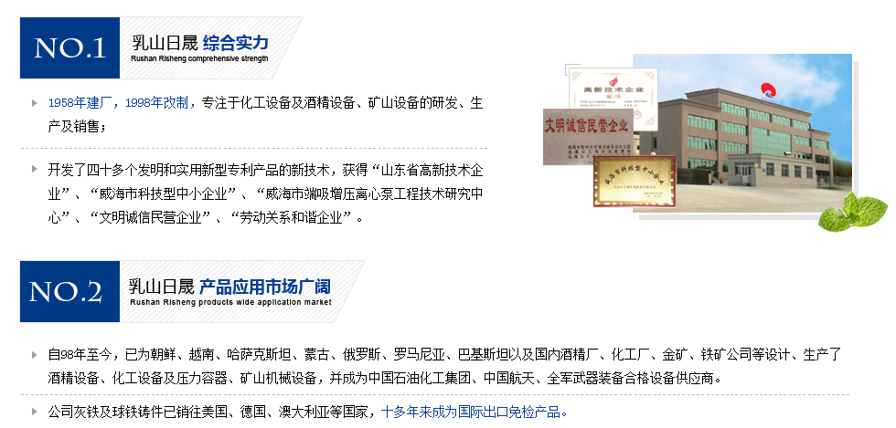乳山市日晟機械制造有限公司位于山東省乳山市城區(qū)工業(yè)園日照路82號。公司地處膠東半島南端,東毗威海,北臨煙臺,西近青島,南瀕黃海,依山傍海,交通便利。公司于1958年建廠,原屬國家輕工部定點設備生產廠家,自1998年改制后,現有員工128人,其中工程技術人員26人,加工設備齊全,占地面積3萬平方米,是集鑄造生產、機械加...